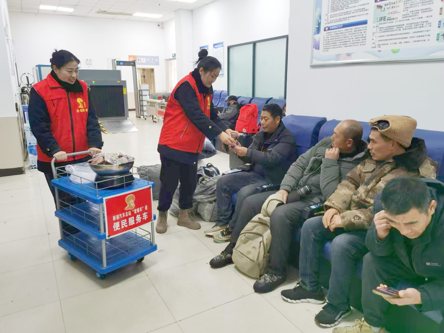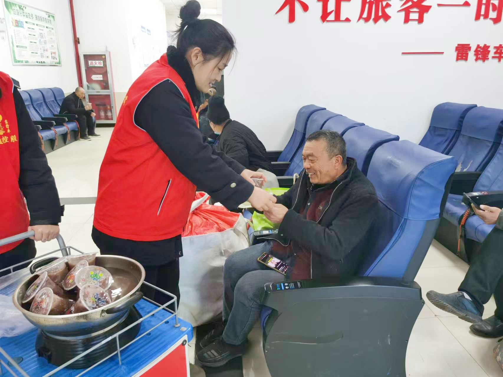 凌晨六点半,市区各客运站内的“雷锋车”手们就已忙碌起来,她们将精心熬制的腊八粥放在便民服务车,穿梭在候车人群中,将一碗碗热粥递到旅客手中,并送上真挚的节日祝福。“喝上一碗热乎的腊八粥,赶路的疲惫都减轻了不少,还过了腊八节,一路上都暖和了。”来自盐城的郑大娘开心地说。