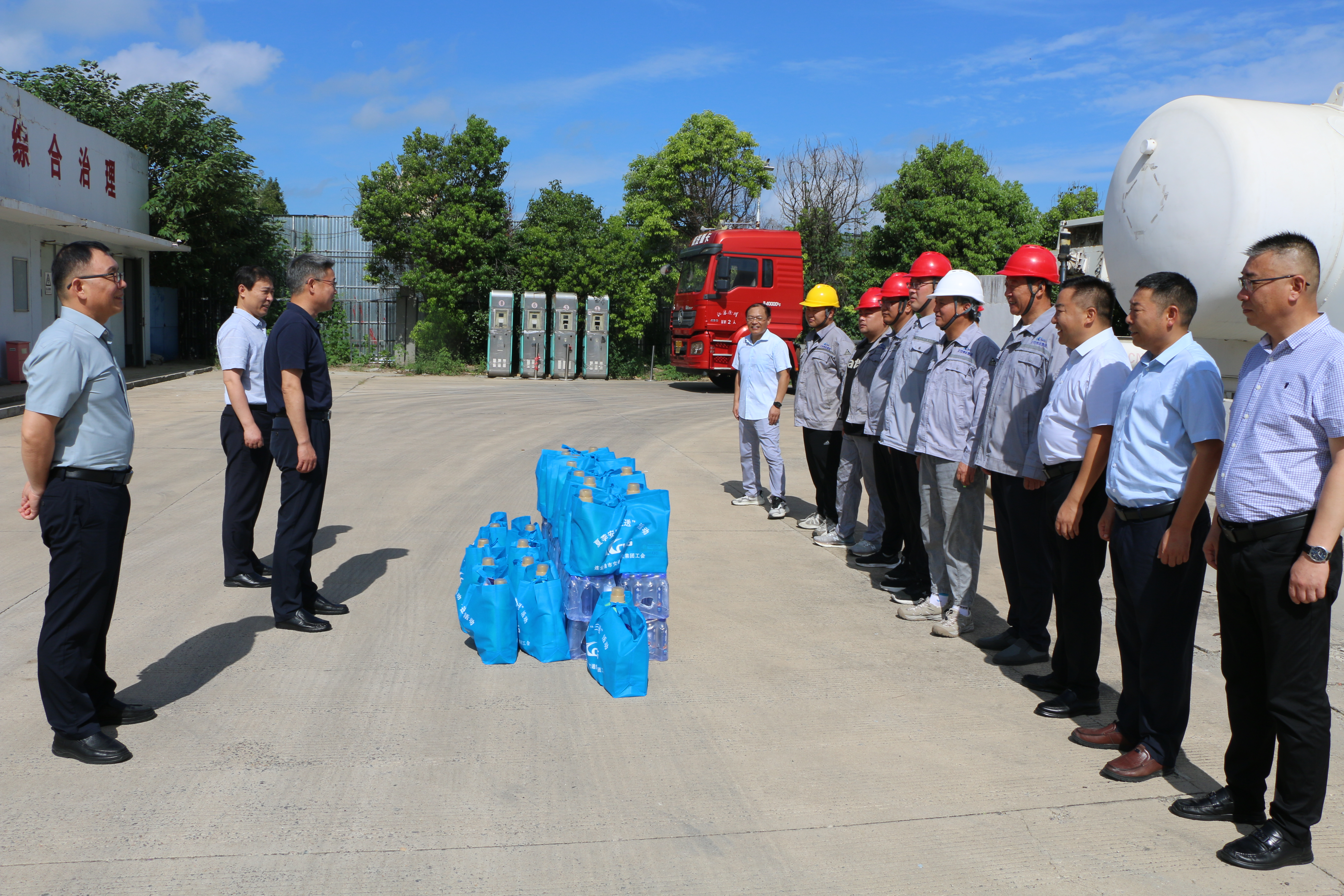 时至盛夏,酷热难耐。7月26日,交通控股乐动app最新版下载,乐动(中国)党委书记、董事长仲伟涛,党委副书记、工会主席陈金师,工会副主席茅红兵、孙华一行到物流乐动app最新版下载,乐动(中国)权属加气站开展“送清凉”走访慰问活动,为奋战在高温一线的职工送去防暑降温慰问品及组织的关怀和问候。物流乐动app最新版下载,乐动(中国)党委书记、总经理张国兴,副总经理、工会主席刘超,总经理助理王高林参与慰问。