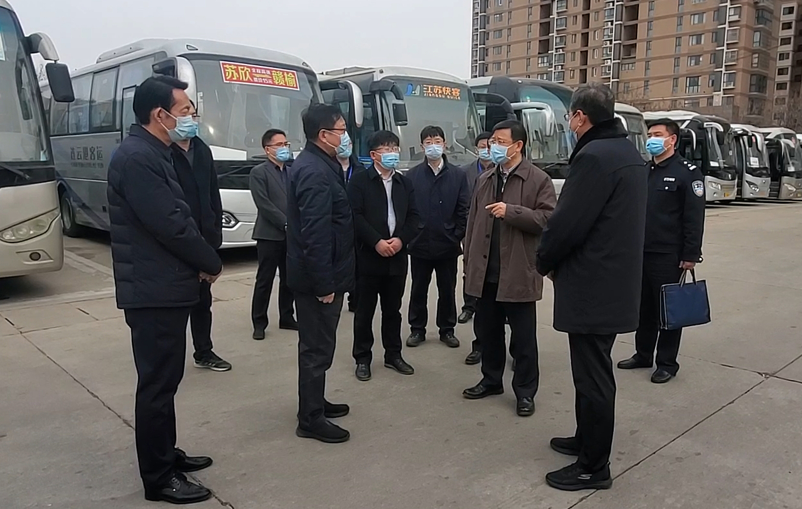 3月6日下午,市委副书记胡建军前往市交通控股乐动app最新版下载,乐动(中国)疫情防控转运保障车辆集中停放点苏欣快客站,实地调研督导疫情防控转运保障车辆及参运人员的疫情防控工作,并现场听取乐动app最新版下载,乐动(中国)董事长、党委书记刘永能就转运工作的情况汇报。市突发新冠肺炎疫情应急处置指挥部转运隔离组相关人员参与调研。
