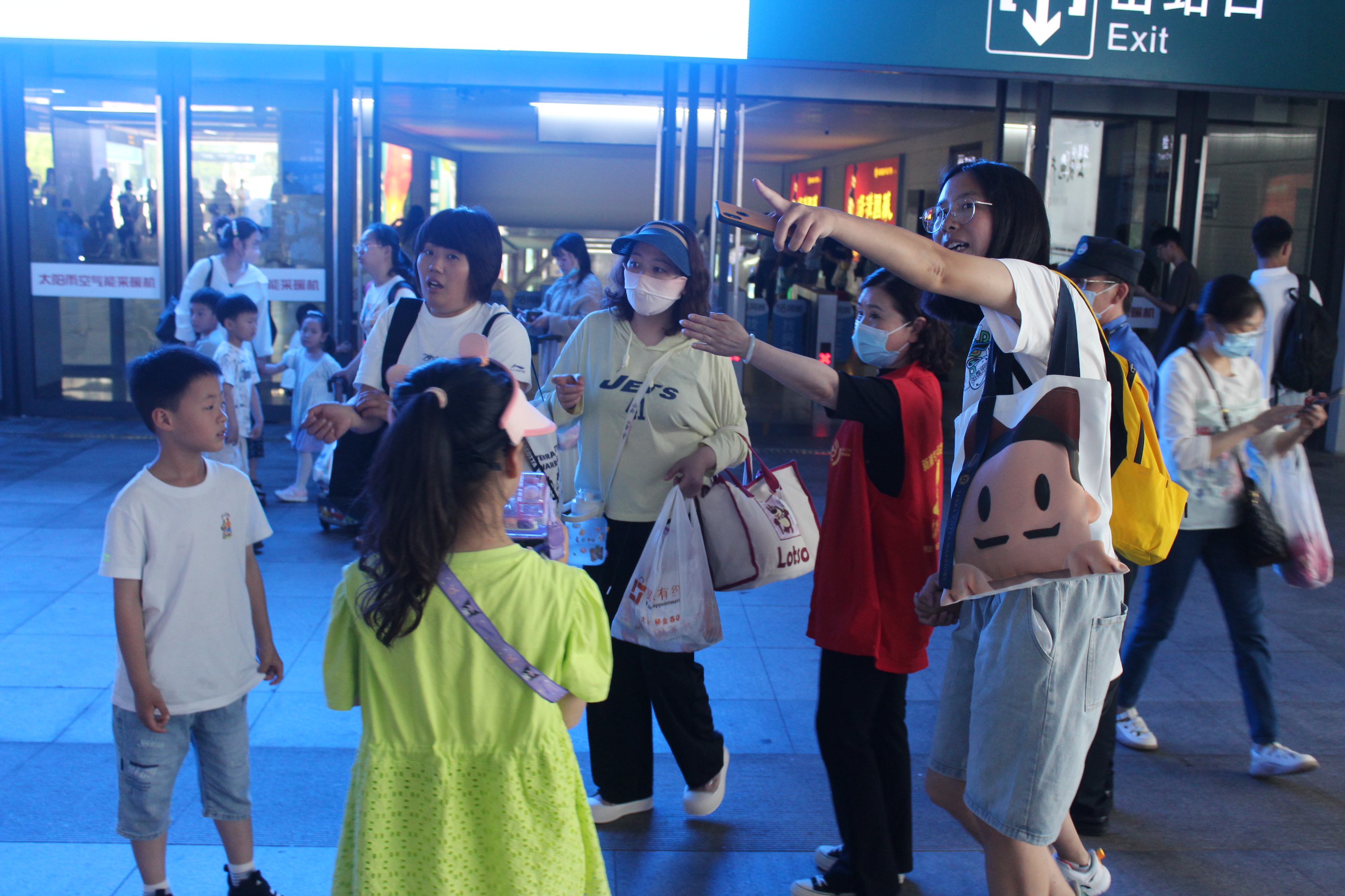 旅客王女士一家3人携带大大小小一共7件行李,他们刚走出出站口,志愿者于丽婕立马过来帮她“减负”了。王女士开心的说:“每年我回来的时候,在“雷锋车”驿站都有志愿者很热情地帮忙,给我提行李,热情帮助我,使我轻松了许多。”