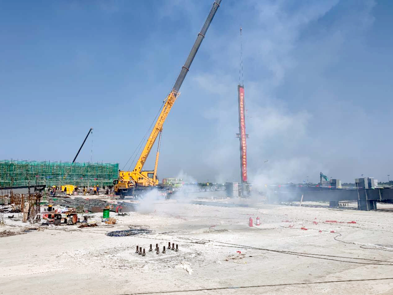 9月3日上午,物流LNG压力容器制造项目现场起吊设备及钢构件已准备就绪,现场拉起了吊装作业警戒带,安全员正忙碌于起重吊装前的最后检查。九时许,随着吊车缆索缓缓收紧,第一根钢结构立柱完成吊装,钢结构首次吊装的顺利完成,标志着车间单体施工进入全新的施工阶段,为车间按期投产运行提供了有力保障。