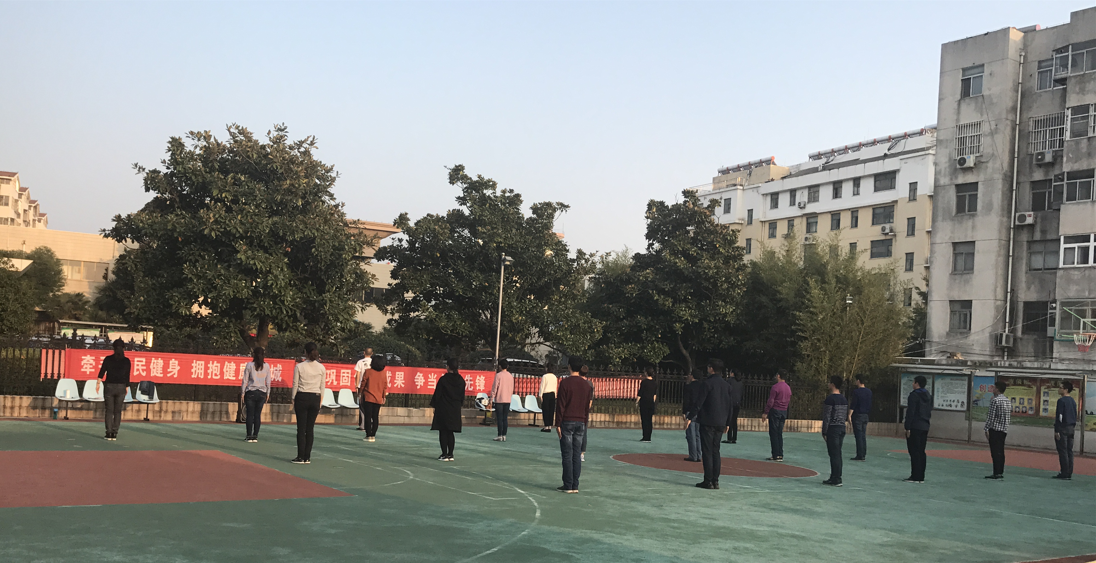 为切实提高公司职工的身体素质,促进职工身心健康,近日,江苏海建航务分公司利用每天上、下午业余时间开展半小时健身活动。公司充分利用院内篮球场地,请来专业健身操老师,指导职工们做健身操。