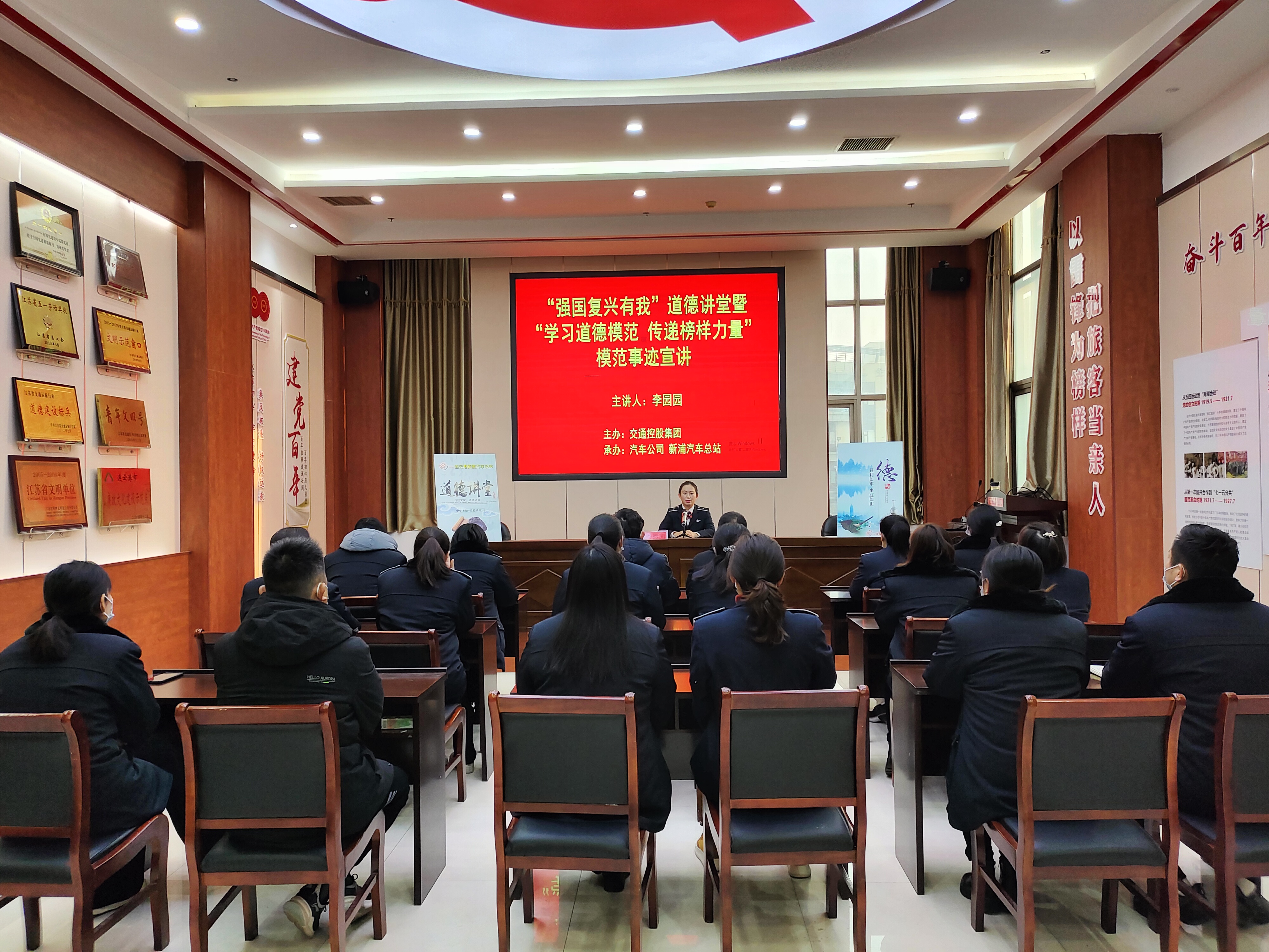 为认真落实“强国复兴有我”道德讲堂暨“学习道德模范 传递榜样力量”主题宣传教育活动,12月7日下午,由交通控股乐动app最新版下载,乐动(中国)主办,汽车公司、新浦汽车总站承办的道德模范进讲堂活动在新浦汽车总站二楼党员会议室开讲。活动邀请市五一劳动奖章获得者、第六代“雷锋车”手李园园宣讲,公司领导班子及干部职工代表30余人参加活动。